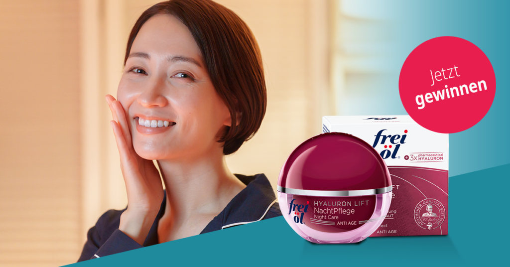 Nutze jetzt die Chance, die frei öl® ANTI AGE HYALURON LIFT NachtPflege zu gewinnen. Bis zum 10. November 2025 hast du Zeit, an unserem Gewinnspiel teilzunehmen.